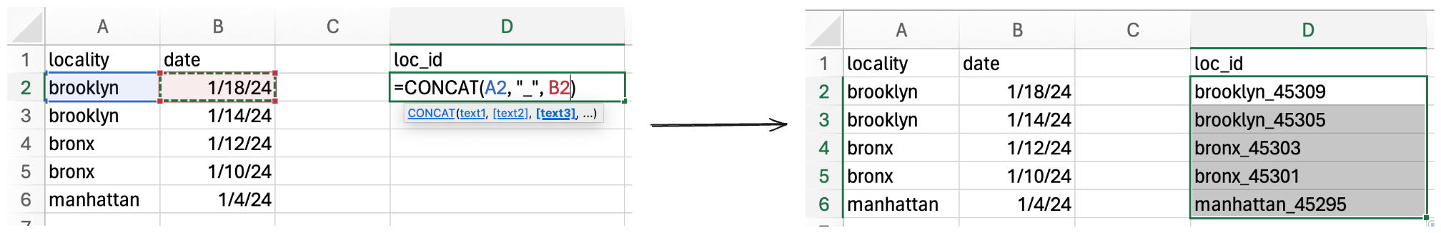 Concatenating data