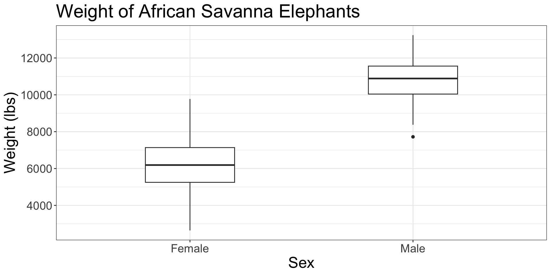 Can have groups on x-axis and continuous variable on y-axis, or the other way around